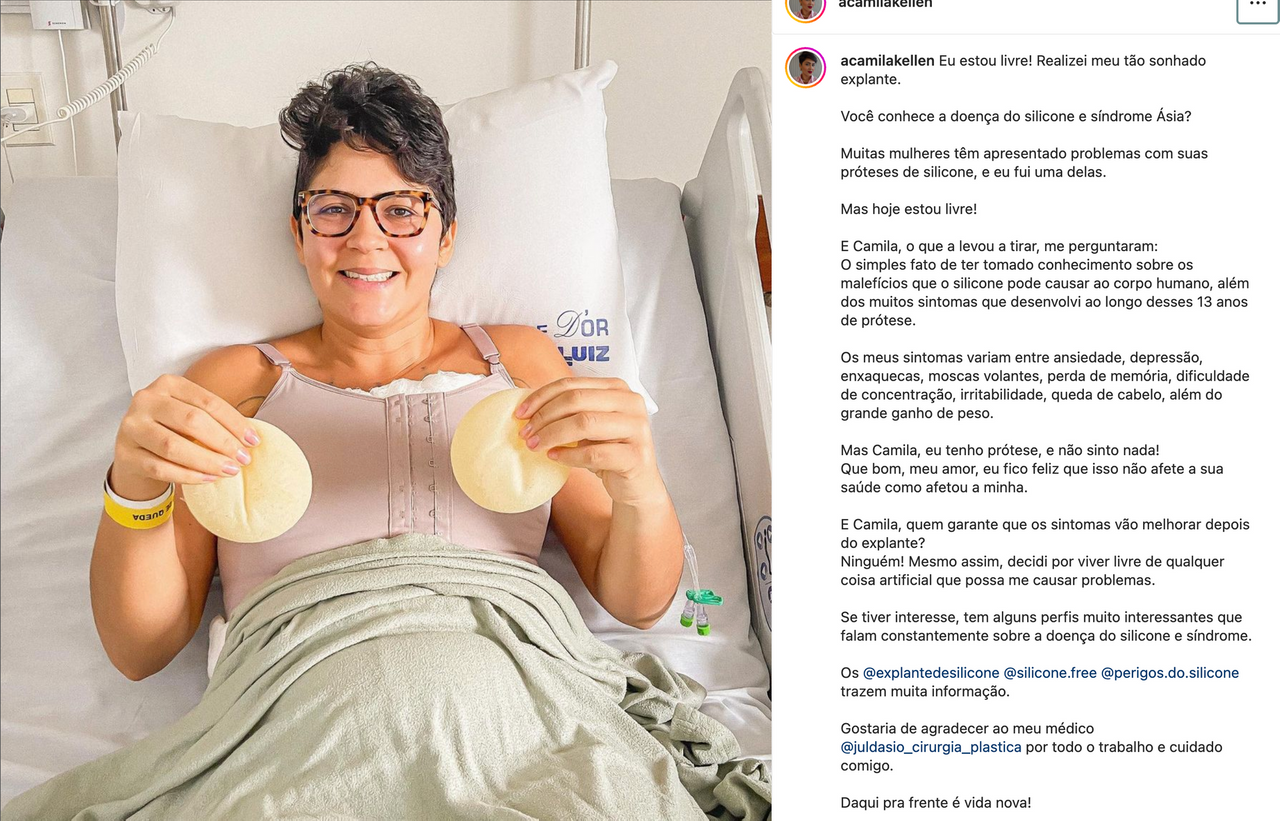 Foi então, que uma amiga se expôs a fim de compartilhar com outras mulheres informações sobre o perigo do silicone. Postou uma foto no Instagram contando um pouco sobre sua jornada e compartilhando perfis que falavam sobre o assunto.